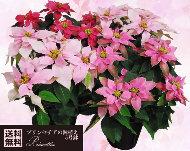 花 フラワーギフト クリスマス 鉢花 鉢植え プリンセチア 5号鉢 送料無料 生花 ポインセチア ギフト 贈り物 お歳暮 プレゼント Xmas プレゼント 誕生日 結婚記念日 お祝い お返し 開店