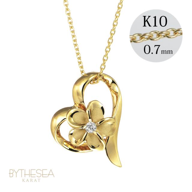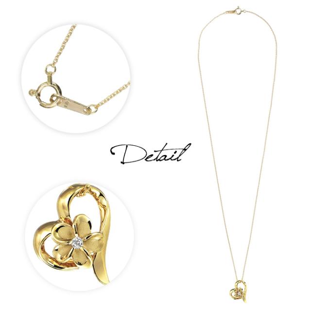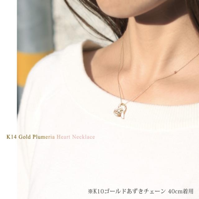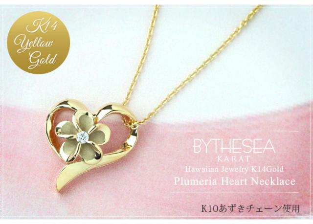 ゴールド ネックレス ハワイアンジュエリー ネックレス プルメリア イエローゴールド ネックレス オープンハート 14K K14 ダイヤモンド ジルコニア K10 10Kあずきチェーン太0.7mm ギフトラッピング可能 彼女 妻 女性 レディース プレゼント 成人祝い 【品番:CG-GP107】