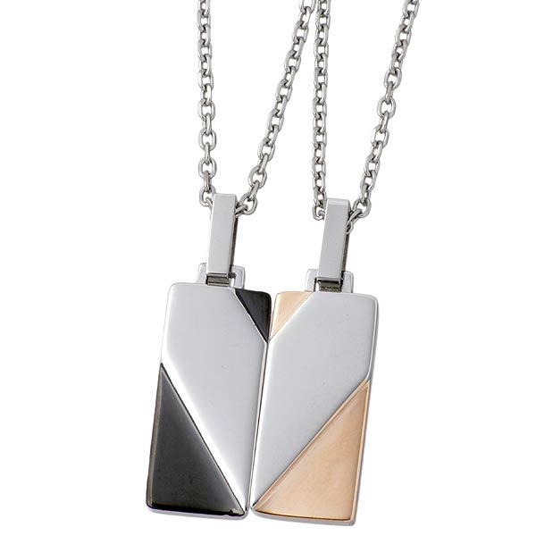 プレート型のフォルムにデザインが入ったステンレスペアネックレス。
