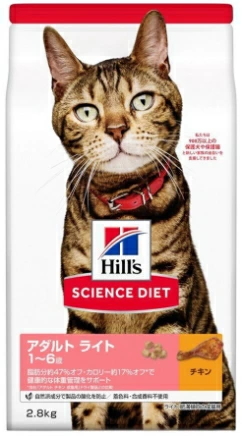 日本ヒルズ サイエンスダイエット アダルト ライト 1〜6歳 肥満傾向の成猫用 チキン 2.8kgx4個(ケース販売)