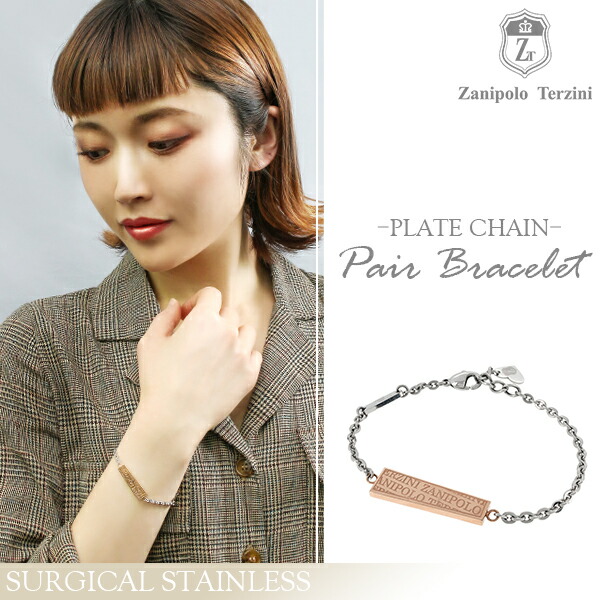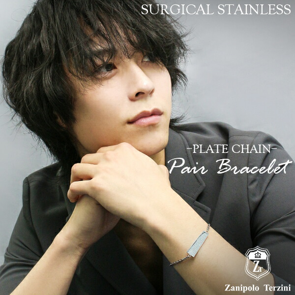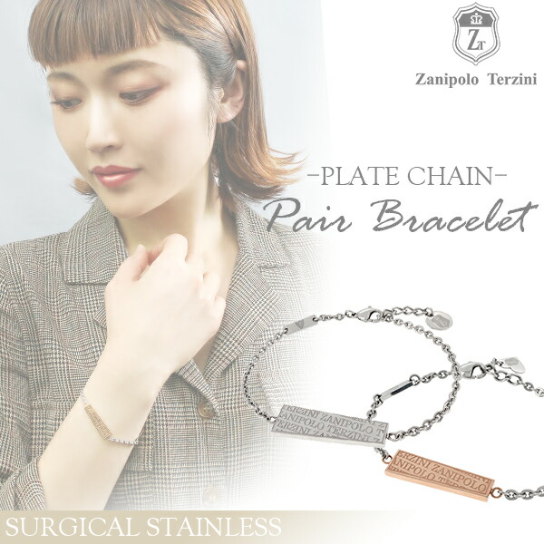 ザニポロタルツィーニ サージカルステンレス チェーン ペア ブレスレット 刻印 名入れ ブレス お揃い ペアブレス チェーンブレス 2本セット ブランド