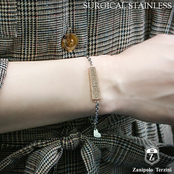 【Zanipolo Terzini/ザニポロタルツィーニ サージカルステンレス ロゴデザイン ペアブレスレット