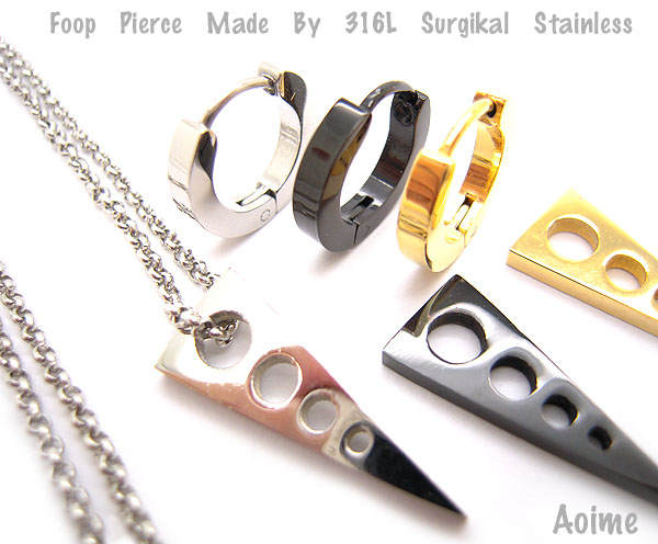 三角のチャームをはずしてフープだけでも楽しめます。はずしたチャームはトップとしてお手持ちのチェーンや紐に通してネックレスとしても使えるお得な3WAY。ステンレスは医療の現場でも使われており、金属アレルギーの心配がほとんどない、人体にとても優しいオススメの素材です。針の部分を耳のホールに入れ、カチッと留めるだけでとっても簡単に着けられます。