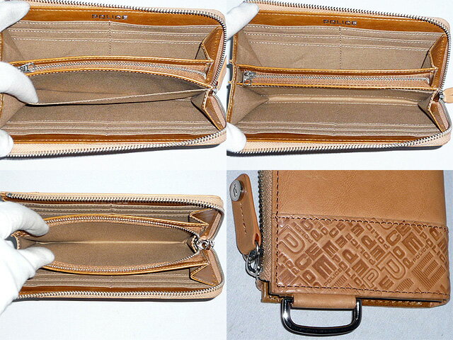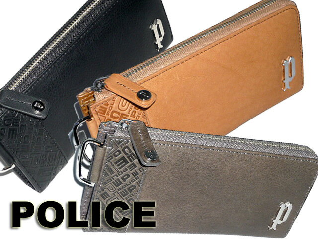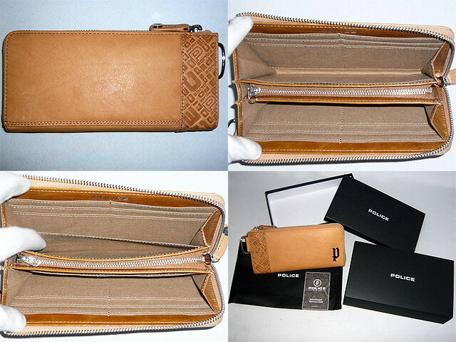 POLICE ポリスイタリアンヌメシリーズ ラウンドファスナー式長財布)クロ、キャメル