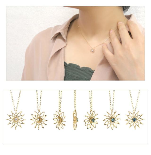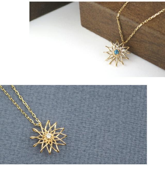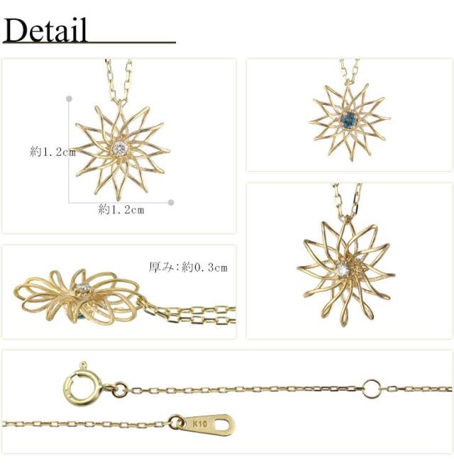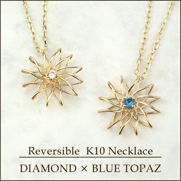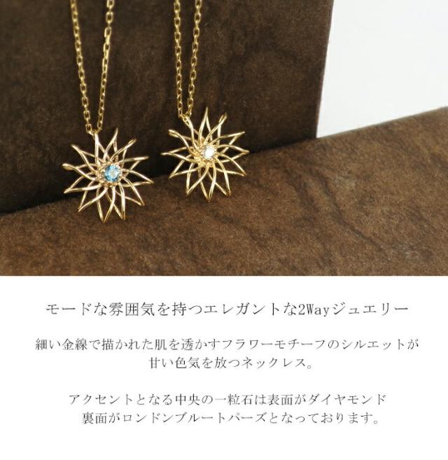 K10 ゴールド リバーシブル ダイヤモンド ロンドンブルートパーズ フラワー ネックレス 4月 11月 誕生石 天然石