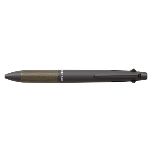 1本でボールペン4色と、シャープの機能が揃った多機能モデル!樽材を使用した高級感と温かみのあるデザインです。【特長】・しっとりとした触感のマットブラック塗装と、高級感ある塗装メタルパーツで 上質な雰囲気の漂うデザインの多機能油性ボールペンです。・デザインの細部にいたるまで仕上がりにこだわった高品位バージョン。 グリップ部分は、木目を特に厳選した樽材を採用しています。・スリムな軸の中に4色ボールペン(黒/赤/青/緑)と、 シャープが搭載されているため、筆記/携帯にも便利です。・ボールペンには、クセになるなめらかな書き味のジェットストリームを採用しています。?