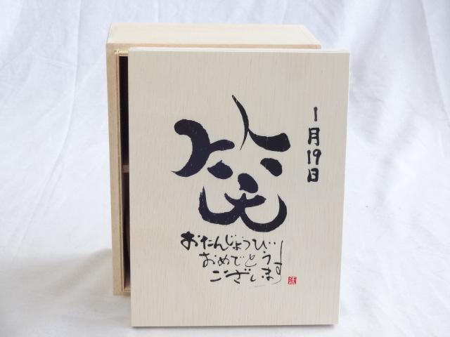 誕生日1月19日セット おたんじょうびおめでとうございます 笑う門には福来たる木箱ペアカップセット(日本製萬古焼き) 陶芸作家 安藤嘉規作×デザイン書道家 榮田 清峰作