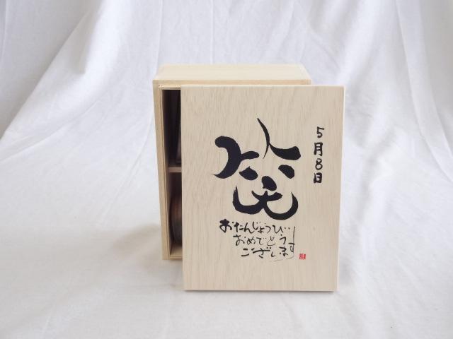 誕生日5月8日セット おたんじょうびおめでとうございます 笑う門には福来たる木箱ペアカップセット(日本製萬古焼き) 陶芸作家 安藤嘉規作×デザイン書道家 榮田 清峰作
