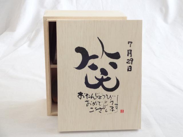 誕生日7月29日セット おたんじょうびおめでとうございます 笑う門には福来たる木箱ペアカップセット(日本製萬古焼き) 陶芸作家 安藤嘉規作×デザイン書道家 榮田 清峰作