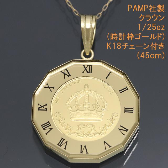 コイン ネックレス ペンダント クラウン 24金 K24 純金 時計枠ゴールド 1/25oz PAMP社製 K18チェーン付 【誕生日 お祝い プレゼント 贈り物 ギフト】【dgpcp】