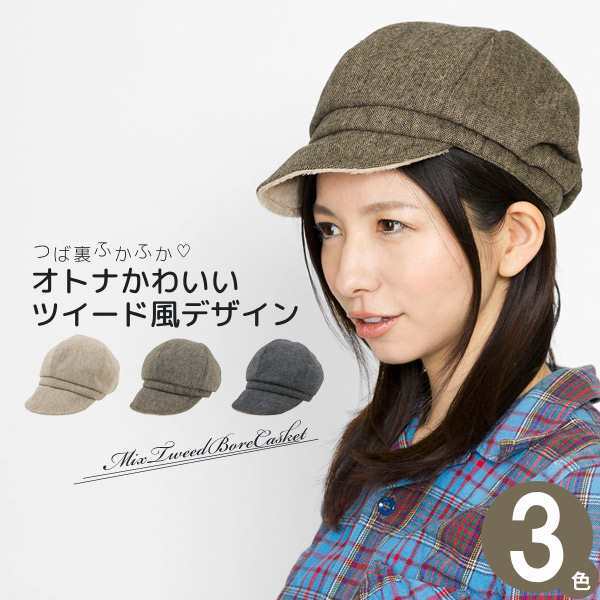 レディース キャスケット [メール便可] つば付き 帽子 キャップ ベロア 秋冬 / MIXツイードボアキャスケット