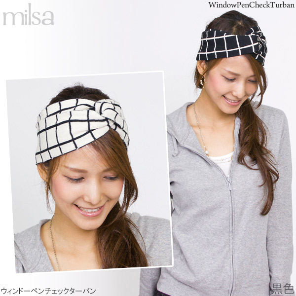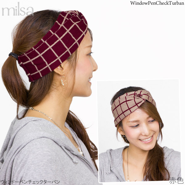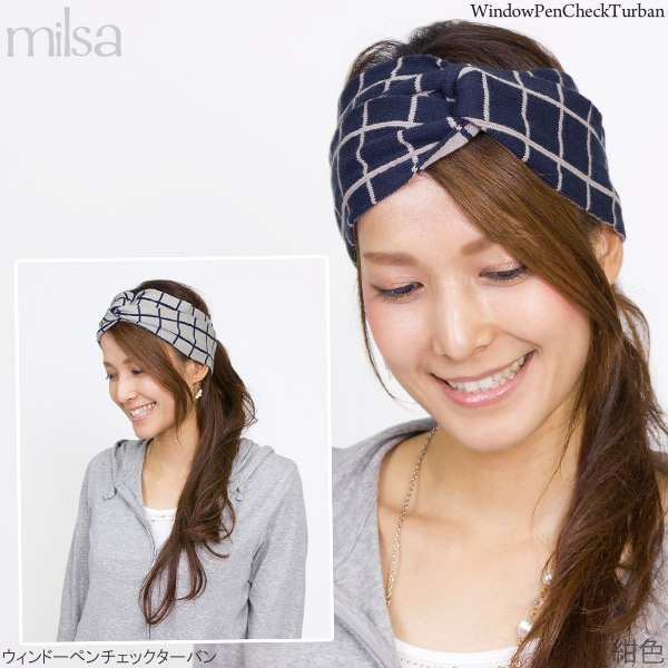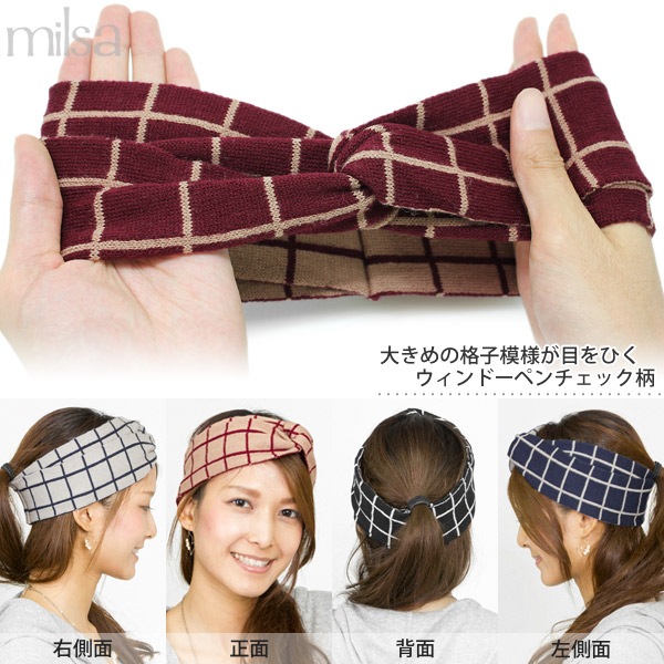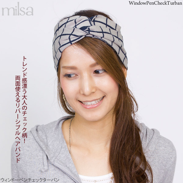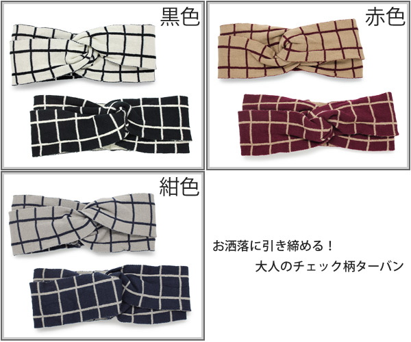 ヘアバンド リバーシブル [メール便可] ターバン ニット カチューシャ バンダナ / ウィンドーペンチェックターバン