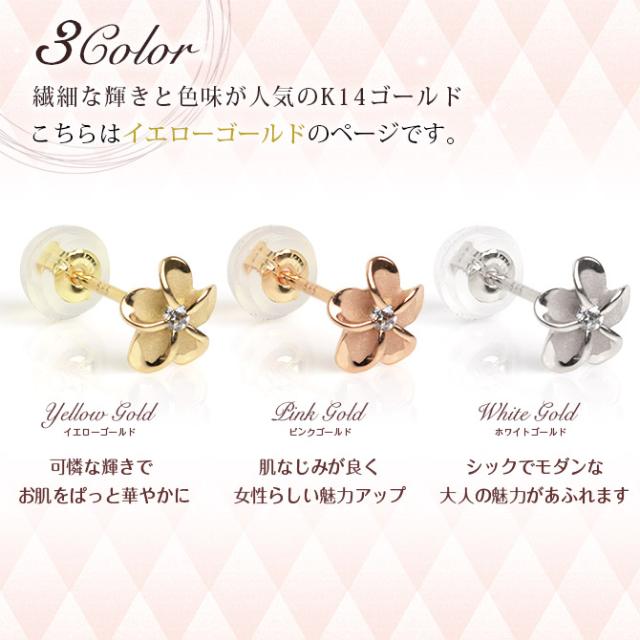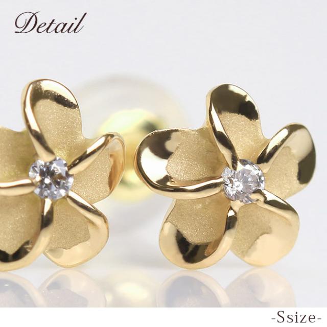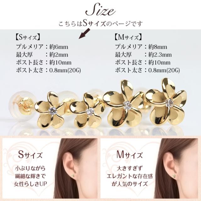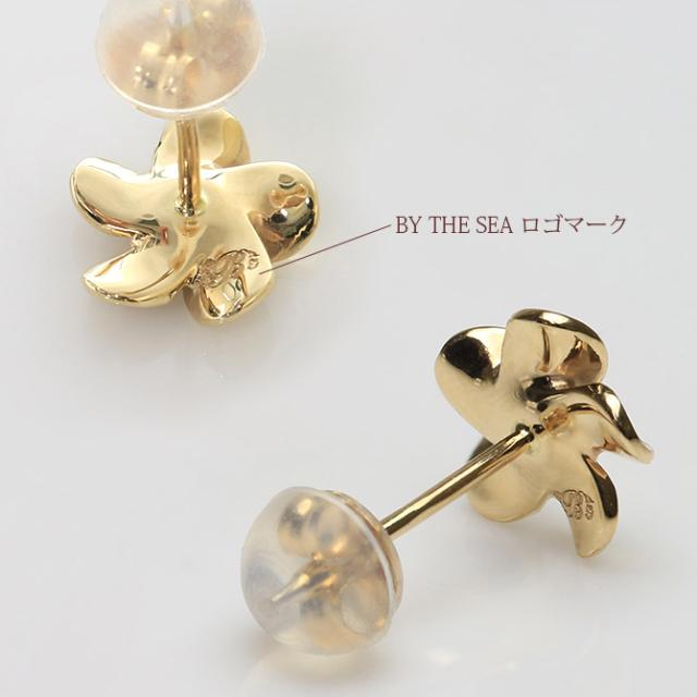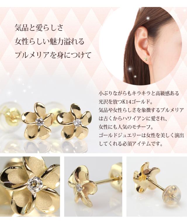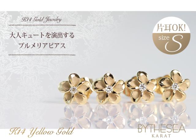 ハワイアンジュエリー ピアス プルメリア イエローゴールド 14K プルメリアピアス Sサイズ 花6mm 片耳(1個)購入可 ジルコニア 14K シリコンキャッチ 20G ゲージ BY THE SEA バイザシー 彼女 妻 女性 レディース 誕生日 プレゼント 母の日 【品番:GE101】