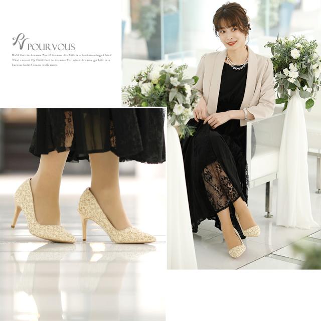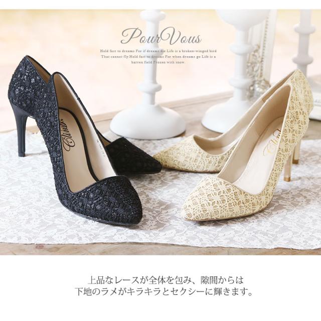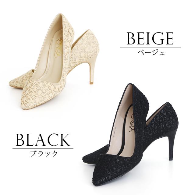ラメ&レースポインテッドトゥパンプスハイヒール【s012】20代・30代・40代・50代パーティーシューズ・痛くないパンプス・太ヒール・ピンヒール・ヒール・レース・ポインテッド・トゥー・ベージュ・ブラック・ラインストーン・デザインヒール・サテン・ストラップ・フォーマル・大きいサイズ・結婚式・二次会・同窓会・お呼ばれ・謝恩会・お宮参り・女子会・デート・入学式・卒業式・パーティー・冠婚葬祭