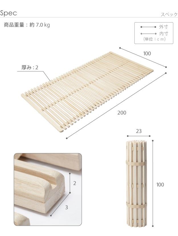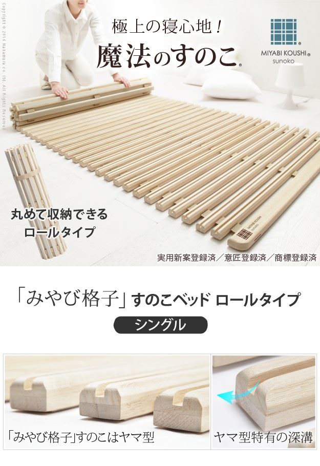 すのこベッド すのこマット 敷き布団マット シングル みやび格子 折りたたみ ロールタイプ 布団の下敷き 天然木 桐製 木製 除湿 調湿