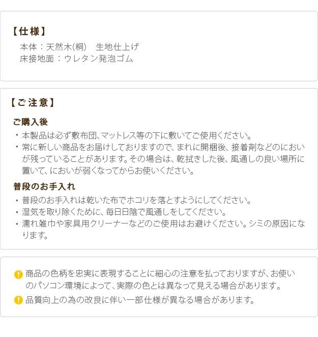 ●更に桐材の調湿効果により敷き布団やマットレスを湿気やカビから守ります。