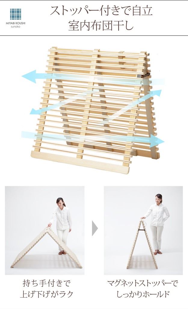 すのこベッド 敷き布団マット 下敷き シングル みやび格子 折りたたみ 二つ折り 布団干しスタンド 天然木 桐製 木製 梅雨対策 除湿 調湿