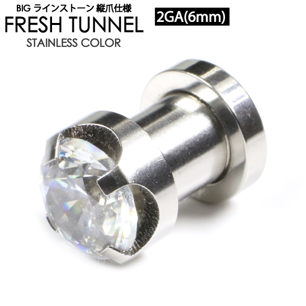メール便 送料無料 フレッシュトンネル BIGストーン 縦爪仕様(2) 2GA(6mm) サージカルステンレス316L クリアジュエル【ボディピアス ジュエル付 ロブ アイレット イヤーレット】 ┃