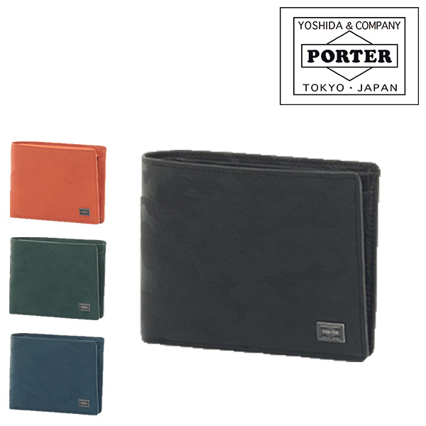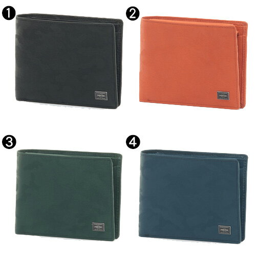 PORTER!小銭入れや札入れ内のポケットが便利な二つ折り財布!≪送料無料≫商品:WONDER(ワンダー)/二つ折り財布カラー:1.ブラック,2.オレンジ,3.グリーン,4.ネイビーサイズ(約):横12×縦9.3×マチ3cm素材:表:豚革(タンニン鞣し・エンボス加工)裏:コットンツイル(アクリルコーティング)重さ(約):110g備考:【メイン開閉】オープン内側/ホック小銭入れ×1(仕切り有(フリーポケット×1))札入れ×2層(カードポケット×2)カードポケット×8クリアポケット×1フリーポケット×3