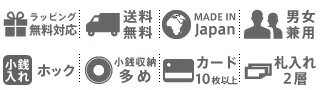 | 備考 | 【メイン開閉】オープン 内側/ ホック小銭入れ×1(仕切り有(フリーポケット×1)) 札入れ×2層(カードポケット×2) カードポケット×8 クリアポケット×1 フリーポケット×3 | ||