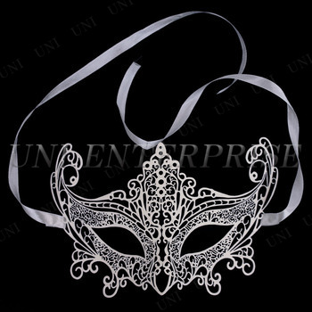 コスプレ 仮装 ベネチアンマスク レース ホワイト(メタル仕様) ユニエンタープライズ プチ仮装 コスプレ小物 小道具 ドミノマスク 仮面 透かし模様 レーシー エレガント
