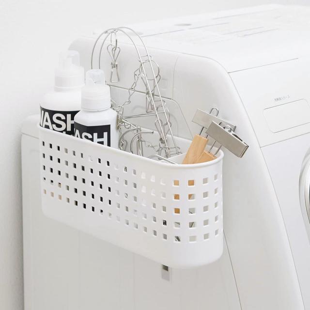 キッチン以外に、洗濯機サイドにも本品を貼り付けることができます。柔軟剤や漂白剤などを収納し、ランドリーネットやピンチの整理にも使えて便利です。そのほかにも、文房具や日用雑貨など様々な物を収納することができて便利です。