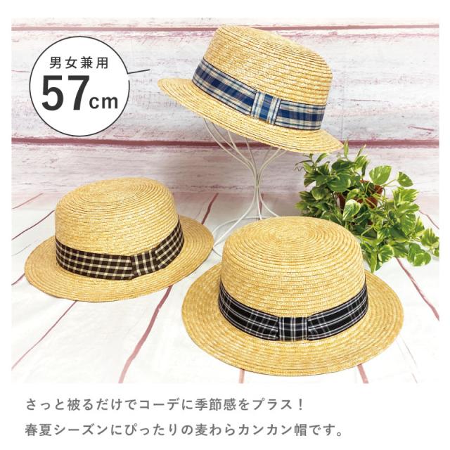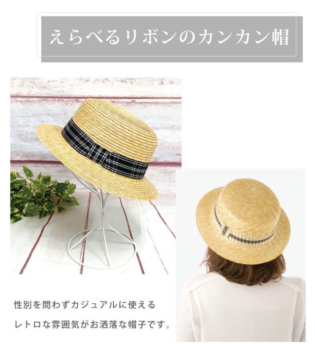 麦わら 帽子 レディース 春夏 UV 当店オリジナル リボンの選べる カンカン帽 つば 短め 57cm ベージュ hat-1202 麦わら帽子 メンズ ストローハット おしゃれ カジュアル 男女兼用 軽い 紫外線対策 日よけ 日焼け防止 衣装 和服 カンカン帽子 レトロ