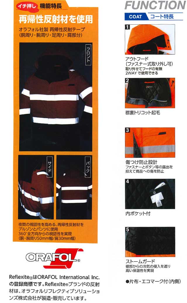 高視認性防水防寒安全服 旭蝶繊維 高視認コート E78100 作業服