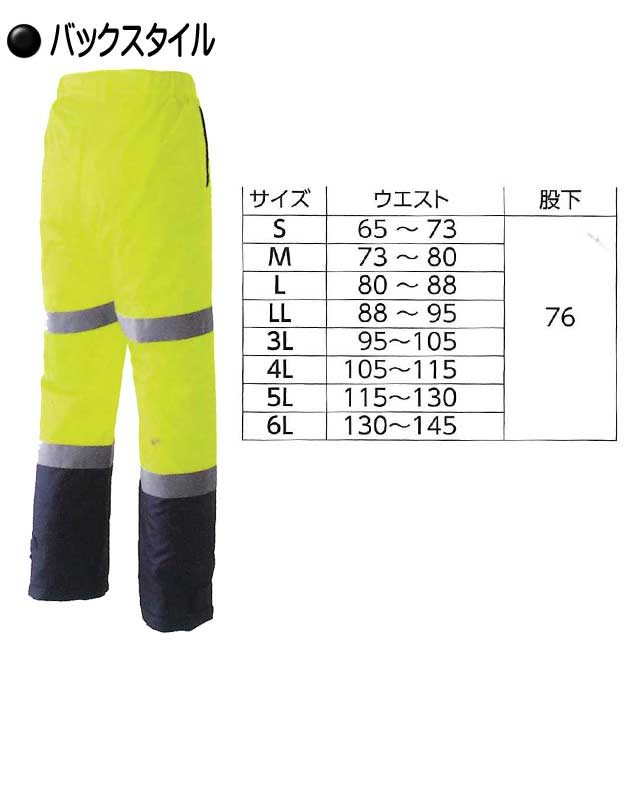 高視認性防水防寒安全服 旭蝶繊維 高視認パンツ(ノータック脇シャーリング) E78200 作業服