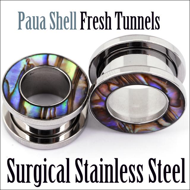ボディピアス 4G 海のオパール パウアシェル 貝殻ピアス 拡張ピアス ステンレスピアス フレッシュトンネル ロブ