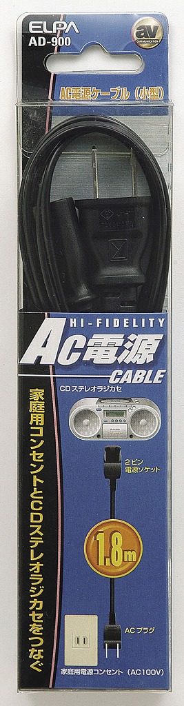 ●AC100Vの外部電源端子付CDステレオラジカセを家庭用電源で使用■定格:125V 3A■ケーブル長:1.8m