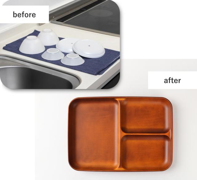 主食からおかずまでひとつのプレートに盛り付けできるので、洗い物はこれ一つ。毎日の家事をちょっと楽にしてくれます。
