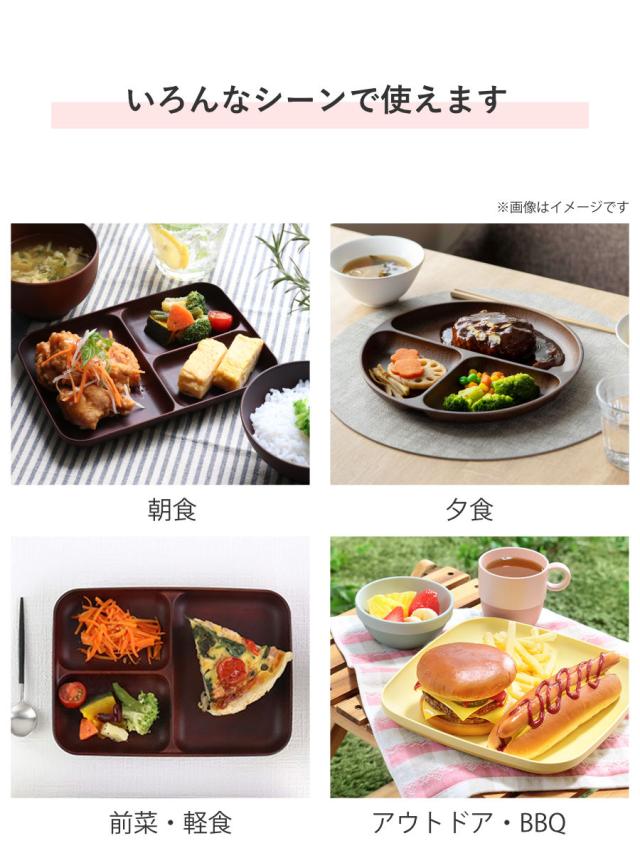 気軽にカフェのようなランチが楽しめる、木製風のランチプレートです。朝食やランチにはワンプレートごはん、夕食にはおかずやおつまみを取り分ける仕切り皿に。食卓の様々なシーンで使えるので、毎日使う食器の定番アイテムとして活躍してくれます。