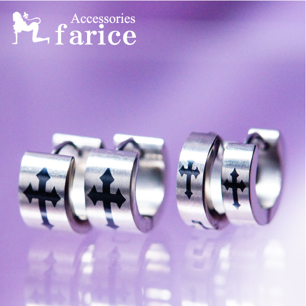 ブラックアロークロス(黒矢十字紋章) ルードデザイン メンズ&レディース ステンレス フープピアス【7mm幅 or 4mm幅】