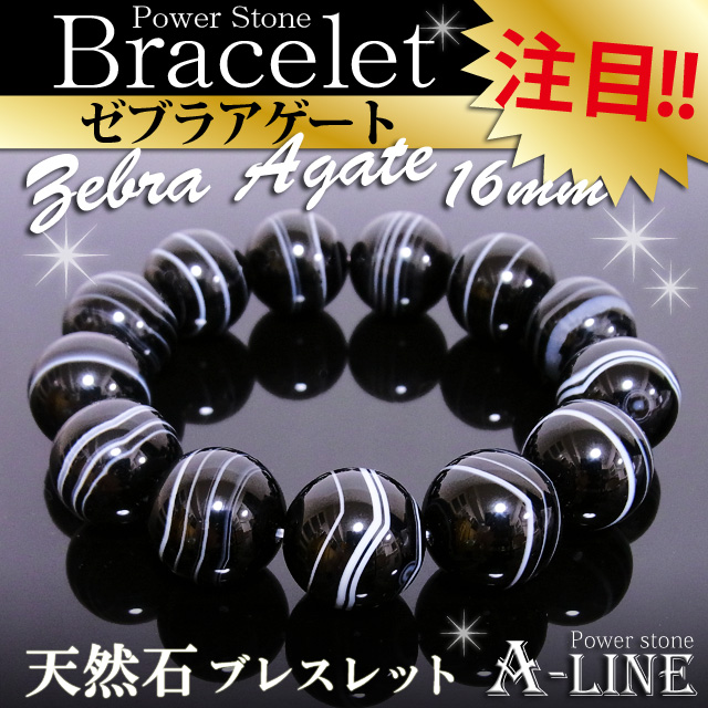 送料無料 パワーストーン ブレスレット 大玉16mmゼブラアゲート・縞細め PW-2759