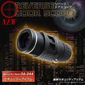 リバースドアスコープ「OA-244」は、普通に覗いたら中は見えないドアスコープに当てて見ることで、室内を確認できるようにする単眼鏡スコープです。帰宅時に、何か怪しい物音が部屋の中からする・・・そんな時に、まず部屋の中を覗いて安全を確認する。そんな時に利用できます。遠近両用の倍率7倍の単眼鏡としてもご利用頂けます。ベルトに通せて持ち運びに便利なケース付!