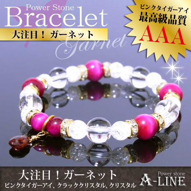 パワーストーン ブレスレット ブレストップに1月の誕生石 ガーネット ピンクタイガーアイ使用 PW-2754