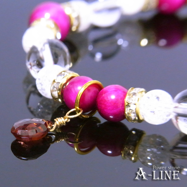ガーネット(ワイヤー)・ピンクタイガーアイ(染め)&クリスタル8mm・クラッククリスタル6mm・合金ロンデル・国産高級オペロンゴム
