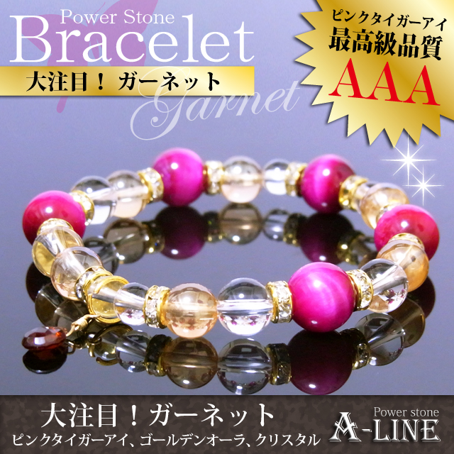 送料無料 パワーストーン ブレスレット ブレストップに1月の誕生石 ガーネット ピンクタイガーアイ使用 PW-2755