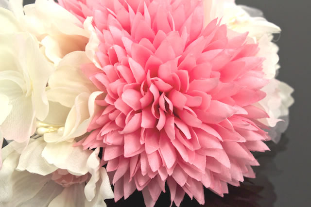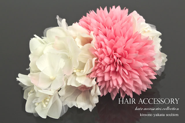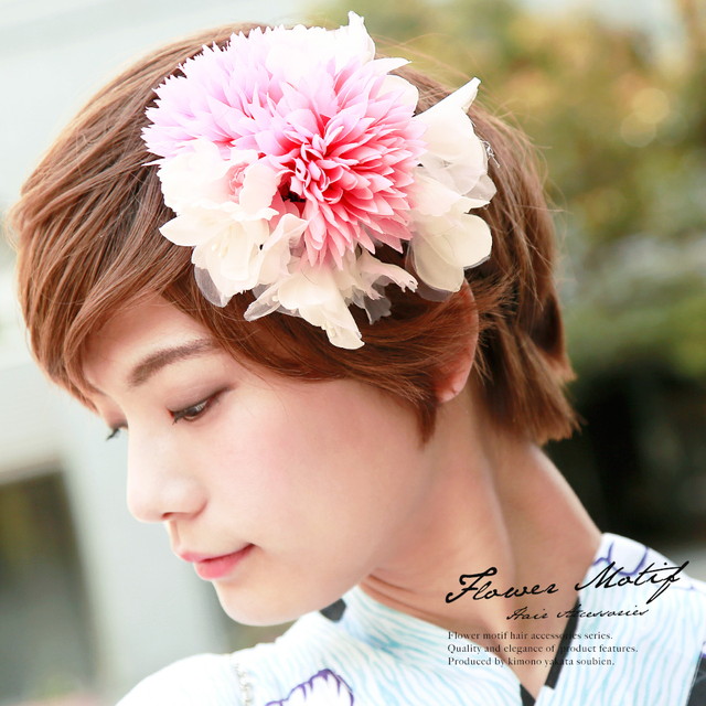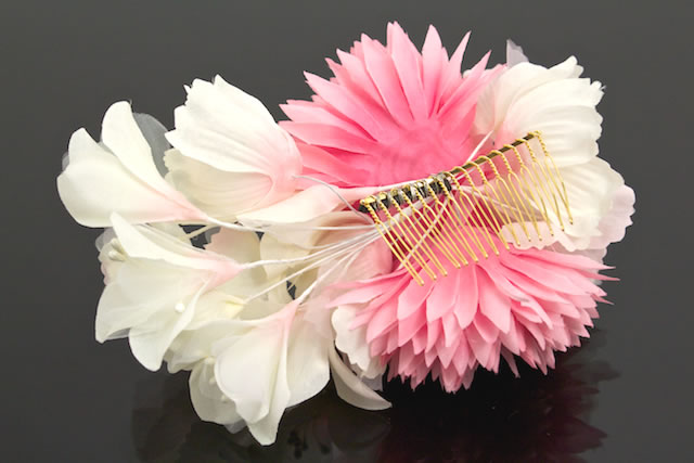 髪飾り ピンク 白 ホワイト ダリア スイートピー つまみ くし コーム 髪留め ヘアアクセサリー 浴衣 着物 振袖 成人式