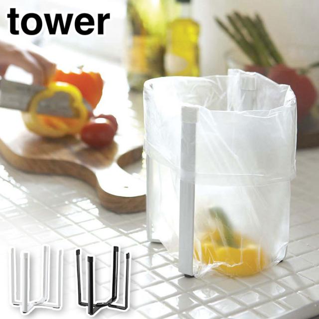tower タワー ポリ袋エコホルダー ホワイト 6787・ブラック 6788 山崎実業【シンク ごみ入れ/ホルダー/ペットボトル 水筒 乾燥/白色/キッチン/台所/yamazaki】