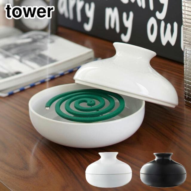 タワー 蚊取りポット KATORIPOT 陶器 山崎実業 ホワイト 7916 ブラック 7917 yamazaki tower 【 蚊取り線香ホルダー 蚊取り線香 蚊遣り 皿 ケース スリム 収納 便利 おしゃれ タワーシリーズ 】
