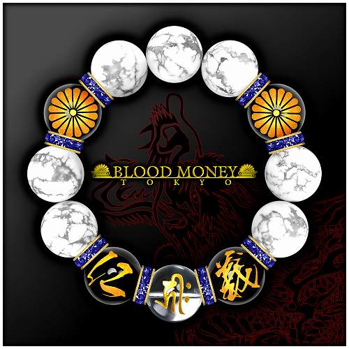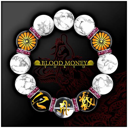 18mm ロンデル×仁義 菊A ハウライト 梵字水晶数珠ブレスレット メンズMen's ヤクザオラオラ系悪羅悪羅系チョイ悪 ヤンキー 悪党の店 バースジャパン BIRTHJAPAN