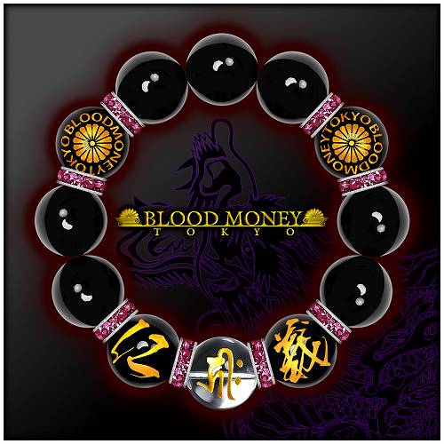 18mm ロンデル×仁義 菊B オニキス 梵字水晶数珠ブレスレット メンズMen's ヤクザオラオラ系悪羅悪羅系チョイ悪 ヤンキー 悪党の店 バースジャパン BIRTHJAPAN