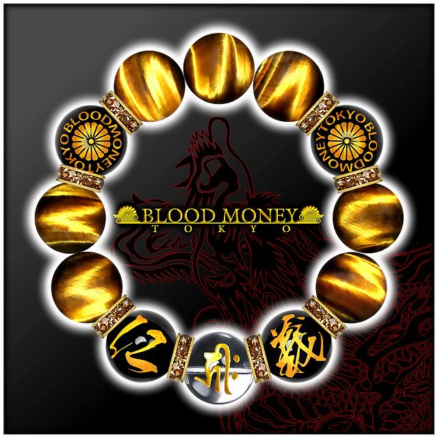 18mm ロンデル×仁義 菊B 虎目石タイガーアイ 梵字水晶数珠ブレスレット メンズMen's ヤクザオラオラ系悪羅悪羅系チョイ悪ヤンキー 悪党の店 バースジャパン BIRTHJAPAN
