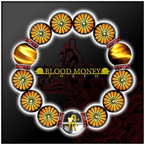 16mm ロンデル×菊A 虎目石(タイガーアイ) 梵字水晶数珠ブレスレット メンズMen's ヤクザオラオラ系悪羅悪羅系チョイ悪 ヤンキー 悪党の店 バースジャパン BIRTHJAPAN