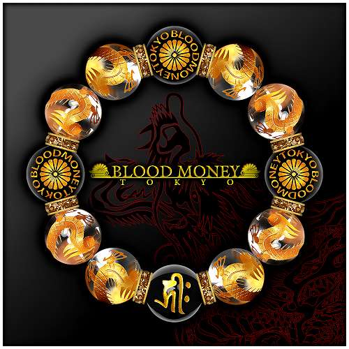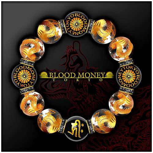 18mm ロンデル×菊B 金龍水晶 梵字オニキス数珠ブレスレット メンズMen's ヤクザオラオラ系悪羅悪羅系チョイ悪 ヤンキー 悪党の店 バースジャパン BIRTHJAPAN