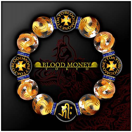 18mm ロンデル×クロス 金龍水晶 梵字オニキス数珠ブレスレット メンズMen's ヤクザオラオラ系悪羅悪羅系チョイ悪 ヤンキー 悪党の店 バースジャパン BIRTHJAPAN