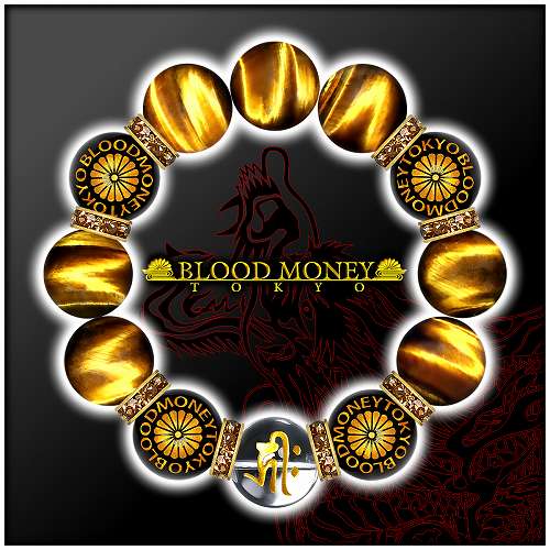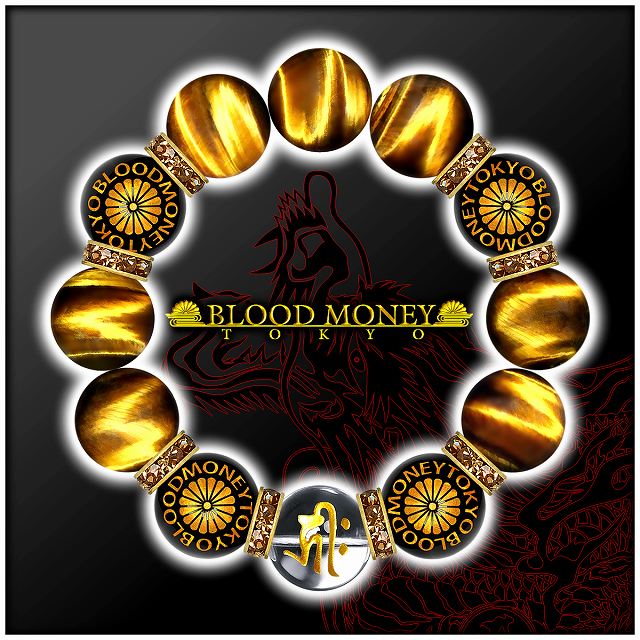 18mm ロンデル×菊B 虎目石(タイガーアイ) 梵字水晶数珠ブレスレット メンズMen's ヤクザオラオラ系悪羅悪羅系チョイ悪 ヤンキー 悪党の店 バースジャパン BIRTHJAPAN