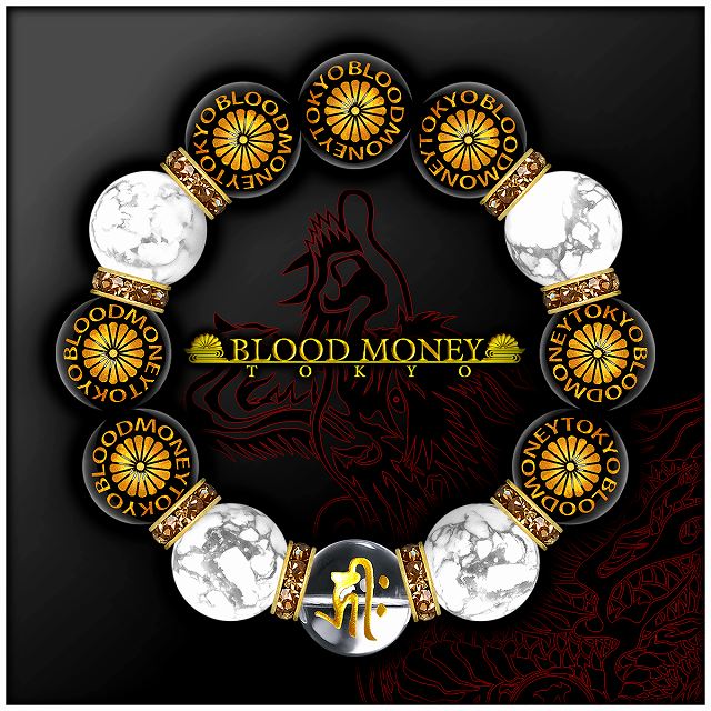 18mm ロンデル×菊 ハウライト 梵字水晶数珠ブレスレット メンズMen's ヤクザオラオラ系悪羅悪羅系チョイ悪 ヤンキー 悪党の店 バースジャパン BIRTHJAPAN